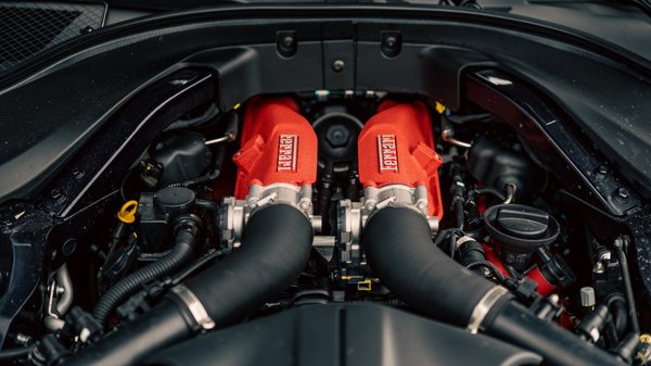 Colombo V12-es motor helyett a Romában a Ferrari 90 fokos hengerszögű, 3,9 literes, biturbó V8-asa van 5750 és 7500 között 620 lóerős teljesítménnyel és már 3000-től 760 Nm nyomatékkal. Hozzá az SF90-ben is használt 8 sebességes, duplakuplungos automata váltó kapcsolódik és hátsókerék-hajtás.