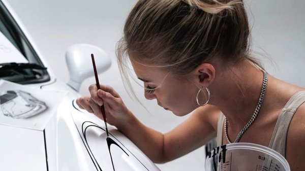 Hanna Schönwald, a hamburgi ipari formatervező és művész meglátta a festővásznat a fehér színű 964-es Porsche 911-esében, aztán ecsetet ragadott. Nem pingálta olyan színesre, mint mondjuk Janis Joplin a 356 kabrióját, de a sportautó formáit szépen kiemelte.