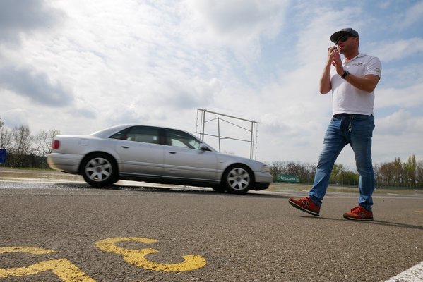 Ennél sokkal ideálisabb, ha valakit kontrollált körülmények között éri az első ijedtség, meg persze a felismerés, például a Groupama Tanpályán szerevezett Totalcar vezetéstechnikai tréningen. Az ilyen tréningeken a szerkesztőség két tagja is részt vesz, mert lehet, hogy a sofőrök mellett ülve észreveszünk olyan hibát, amit az oktató esetleg a toronyból nem feltétlen. Meg persze azért is, mert sokan annyira idegesek, hogy bár képességeik alapján simán megoldanák a feladatot, a stressz egyszerűen nem engedi. Ilyenkor jól jön pár jó szó a jobb egyről.
