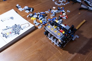 Zseniálisan vezet végig az egész motorépítésen és ehhez megadja a megfelelő alapot. Nem csap bele egyből a sűrűjébe, mert mindenek előtt az állványt kell összepattintani, amin aztán könnyebben szerelhető és forgatható az egyre terebélyesebb motor. A konzol kis csapokkal illeszkedik a motor vázához és a tövében információs tábla van, szédítő adatokkal.