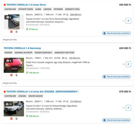 Egy félmillió forintos Renault Thalia vásárlás utáni nagyszervize százötvenezer forint, ami már eleve az autó árának harminc százaléka. Ha gumit is kell venni, ami nem elképzelhetetlen a szegmensben, az további 80-100 ezer, tehát máris az autó árának felénél járunk. Itt már erősen ott tartunk, hogy az asztalról kell elvenni ezeket az összegeket és a betört fejű Juliskának nem lesz mit vacsorázni. Hopp, egy átírási költség, amin rendszeresen meglepődnek, a biztosítás, de jön még a megyematrica és a csetreszek, valamint a húsz éves járgány egyéb akut problémáinak elhárítása is. A végén a vásárló ott tart, hogy az autó árának dupláját költötte a kocsira és végül ki a hibás? Hát az eladó, a szerelő, a gyártó, a gazdagok meg a világ.