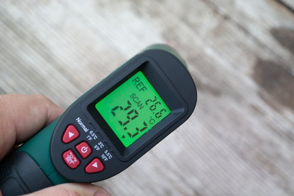 Az infrás hőmérő működése viszonylag egyszerű. Mivel a mért felület és a mérőeszköz között nincs fizikai kapcsolat, így az eszköznek a felület által kibocsátott infravörös sugárzást kell mérnie, ami egyenesen arányos a hőmérsékletével. Van rajta egy lézeres pozicionáló, aminek segítségével látod, hogy nagyjából mit mérsz, és ideális esetben akár méteres távolságról is tud működni.