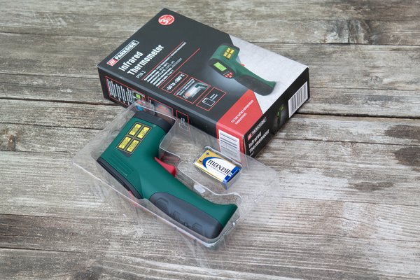 Nincs benne referenciaérték alapú csipogás sem, és külön-külön kell bekapcsolni a háttérvilágítását és a lézeres pozicionálást, ami a Parkside esetén teljesen alapértelmezett. Emellett egy használaton kívüli, tűs, érintős maghőmérővel is ellenőriztük a mért értékeket, a fizikai kapcsolat miatt ennek kellene a legpontosabbnak lennie.