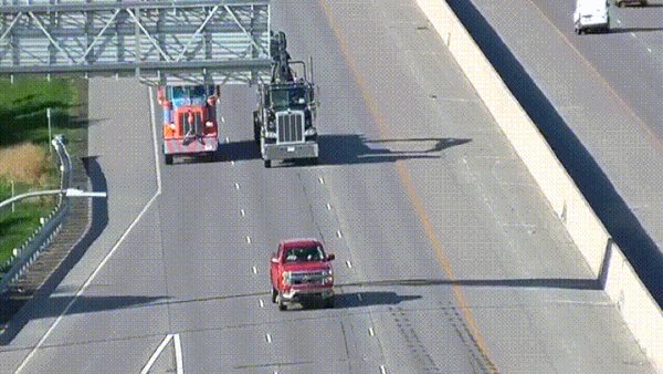 Az üres pickup mögött eleinte csak gyűlt a sor, majd egyre meredekebb kitéréseket hajtottak végre a hátulról érkezők mielőtt nagyjából tíz perc elteltével megérkezett az - egyébként várható - figyelmetlen kamionos, aki fékezés nélkül rohant bele a pickupba.