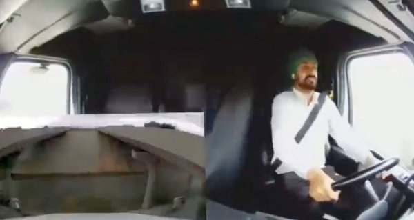 Jól látszik, hogy a kamionsofőr már a videó elején is a szemhéján át figyeli az utat, de ekkor még próbál magához térni, ki is tekint az oldalablakon. De a szem csak nem akar nyitva maradni, így a jármű behúzódik a két menetirányt elválasztó füves sávra, erre már emberünk is felébred, de az álmot végérvényesen a zuhanás hessegeti el.