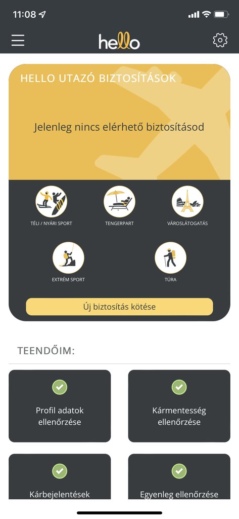 Az út és a szállás mellé már csak a biztosítás kellett, ezügyben a Hello2U alkalmazásra esett a választás. A Hello2U a Posta Biztosító mobilalkalmazása, amiben megtalálható minden funkció a szerződéstől a kárbejelentésig. Míg az alkalmazás felülete bőven lehetne szebb és kényelmesebb, a funkcionalitására nem lehet panasz. A biztosítás megkötése könnyű és gyors és miután ez megvan minden elérhető az alkalmazáson belül. Így nincs többé szükség a nejlonbugyiba csomagolt szerződés őrizgetésére, hacsak nem ragaszkodik hozzá az ember.