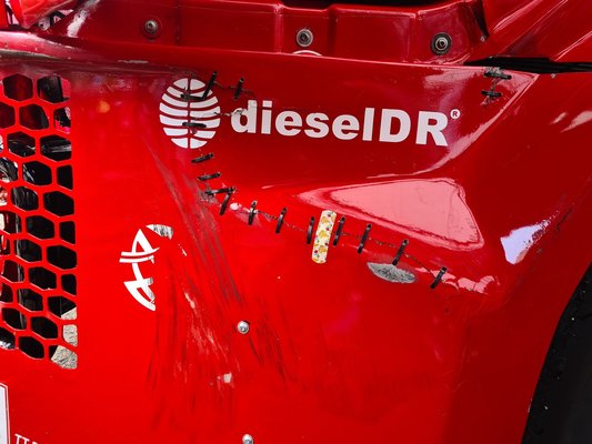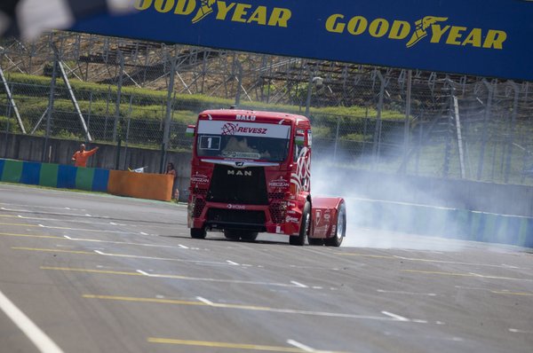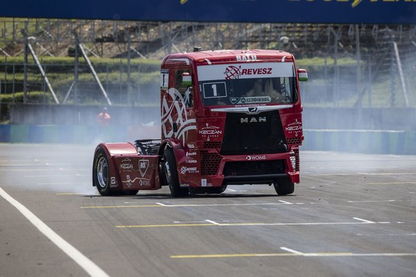 Kiss Norbinak a kamion EB hungaroringi futamán a négy futamból csak azért nem lett meg mind a négy, mert a másodikon úgy felkenték a palánkra, hogy a kamionja cafatokban jött le a pályáról. Lógott fül(k)e-farka. Mindenki arra gondolt, hogy a további két vasárnapi futam kuka, ezt lehetetlen talpra állitani néhány óra alatt, gyakorlatilag kisebb csodára lenne szükség, hogy menni tudjon. A csapat viszont megcsinálta a csodát, a Révész Racing versenymérnöke, Bakó Csaba pedig elmesélte, hogyan kell gyorskötözővel és ragasztószalaggal futamgyőztes autót építeni.