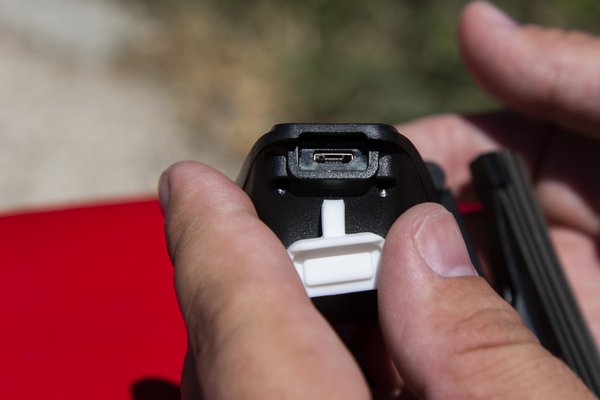 Maga a szerkezet egyébként jól ki van találva, és természetesen a túlbonyolítás vádjával sem élhetünk: egy darab, gumiajtóval védett microUSB csatlakozója van a töltéshez, ezen kívül egy darab állapotjelző led jelzi a töltést (amíg pirosan villog, addig tölt, ha folyamatosan világít, akkor kész), illetve egy darab gombot lehet nyomogatni rajta. Van szakaszos és folyamatos módja, ezek egymás után következnek, tehát egy gombnyomással a két másodperces szüneteket tartó módot aktiválhatjuk, még egy gombnyomással pedig folyamatosra vált a rendszer, a következő gombnyomásra pedig kikapcsol.