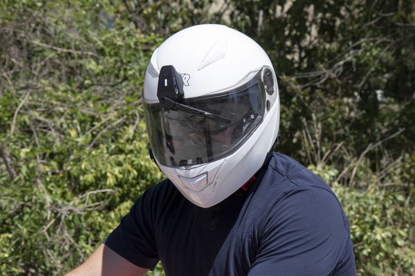 Egy GoPro-tartó jellegű műanyag konzolt kell felragasztani a bukósisak plexijének a tetejére, egy mozdulattal le-fel lehet szerelni az ablaktörlőt, nem mindig kell a sisakon lennie. A látótérből viszonylag keveset takar ki a működésen kívüli lapát, gombnyomásra viszont teljesen áttörli a látótér nagy részét. Az én L-es méretű Lazer bukósisakomnál konkrétan beleért a plexi aljába, felragasztás előtt érdemes kipróbálni, bár sok variálási lehetőség nincs, 8 centis lapátméretnél egyszerűen kell a legalább 12 centis pleximagasság középen.