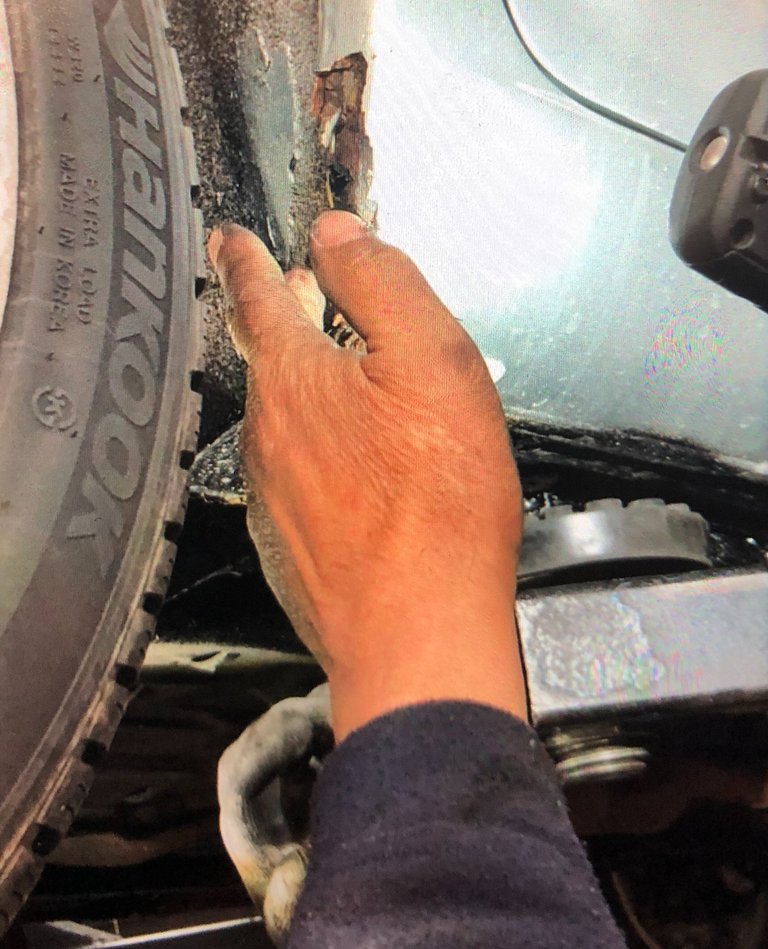 A vásárlás utáni hétfőn elvitték a Mazdát egy budapesti gyorsszervizbe, hogy elvégezzék az ilyenkor szükséges karbantartásokat, olajcserét. A szervizben jelezték, hogy az autó alja finoman szólva rohad, gyakorlatilag életveszélyes, a cikkben található fotók ekkor készültek. Ez az állapot hunyorítva sem menne át a műszakin, de a Mazdának körülbelül két hete sikerült. Innen Juditék felhívták Gizellát a problémával, aki annyit mondott, hogy hárítsák el a közvetlen életveszélyt jelentő problémákat, és küldjenek róla számlát a Rozsdapatkány Kft.-nek.