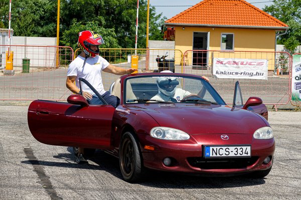 Triviálisnak tűnhet, de például olyan dolgokra is kitért a videó, mint hogy érdemes kipakolni mindent az autóból, ami el tud mozdulni, hiszen oldalgyorsulások lesznek. Nekem legalábbis csak oldalgyorsulások, hisz hosszirányúra az autóm képtelen, mert bár nagy volt a kísértés, mégsem a Priusszal, hanem az MX-5-tel vettem részt az oktatáson. Ha már versenypálya, indokoltnak éreztem az öreg Federal semi-slickek felpattintását, így indultam neki péntek reggeli képzésnek a Kakucsringen.