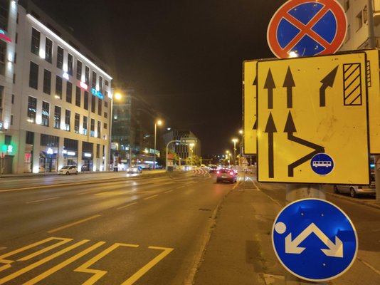 Nem csak a Váci út van végigrakva sárga táblákkal, hanem a Bajcsy és a Kiskörút is, sőt persze számos más pont is a városban, de talán a metrófelújítás miatt jelenleg ez a leghosszabb és legmacerásabb szakasz. Ennek megfelelően, teljesen logikusan van jelezve végig a sávok folyása akkor is, ha sok benne a változás, és kétségtelenül torlódást okoznak a metrópótló buszok.