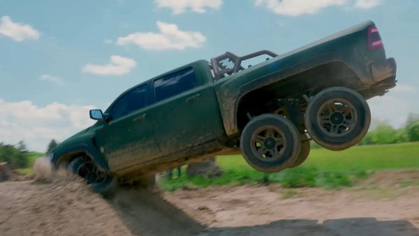 Bár a bevásárlószatyrok miatti tengelyterhelés nem indokolná, valahogy mégis divat lett a hatkerekű pickup műfaja. Készített ilyet a Mercedes a G osztályból, készült Ford F150-ből és RAM TRX-ből is, mind a többszáz ezer dolláros kategóriában. Utóbbi közel 250 ezer dollár (~100 millió forint) és egy 797 lóerős V8 hajtja, de a lenti videó alapján ekkora teljesítménnyel is simán el lehet mérni egy ugratást.