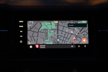 A gyári navigáció elvileg folyamatos internetkapcsolattal szinkronizál, de a gyakorlat azért nem mindig ezt mutatja, a 8-as út Veszprém környéki építkezésein nem navigált olyan magabiztosan, mint a Google Térkép vagy a Waze, és nem adott át zavarba ejtően sok valós forgalmi információt sem, nagy előnye viszont, hogy a műszeregységre is ki tudja rakni magát, és akár teljes képernyőn is tud navigálni, ami elég széles képet ad a körülöttünk lévő utakról is, ami sok esetben baromi praktikus. Sajnos az Android Auto és a CarPlay képe mindenképpen csak középen lesz, tehát a Waze-t nem tudjuk ugyanúgy nézni magunk előtt, csak középen.