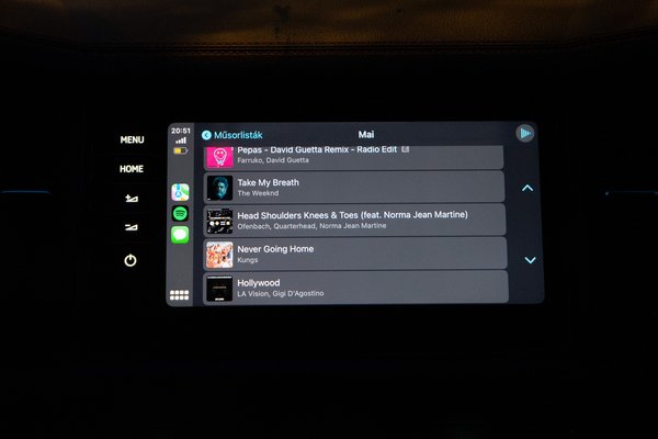 Kétségtelenül a vezeték nélküli telefoncsatlakoztatás az egyik leghasznosabb funkció, és szerencsére jól is működik. Egyszer kell összepárosítani a mobilt és az autót, ami nagyon egyszerű folyamat, onnantól fogva pedig gyakorlatilag minden automatikusan történik, ha Bluetooth segítségével meg tud történni a párosítás, akkor azon keresztül a telefon rendszere már aktiválja a szükséges Wi-Fi kapcsolatot is, a telefon csatlakozik, és azonnal indíthatunk navigációt vagy bármilyen támogatott alkalmazást. Én a Waze mellett a Spotify-t, esetenként a Podcast Republic rádiós platformot szoktam ilyenkor, de hangvezérléssel még a Messenger alkalmazást is lehet használni.