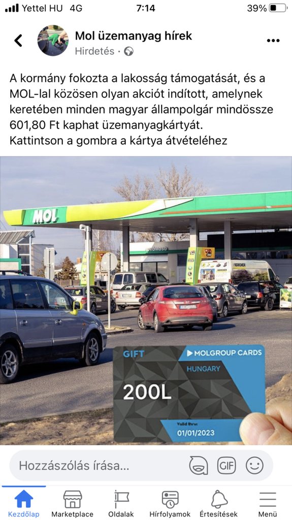 "A napokban mi is értesültünk róla, hogy csalók élnek vissza a MOL Magyarország nevével, akik adatszerzési célokból, hamis módon, nem létező akciót kínálnak üzemanyagkártyáinkkal kapcsolatban Facebookon terjedő posztokban. Ezekhez az aktivitásokhoz, ajánlatokhoz vállalatunknak nincs köze. Mindenkit arra kérünk, hogy legyen körültekintő, a hivatalos ajánlataink minden esetben megtalálhatók a www.mol.hu weboldalon."