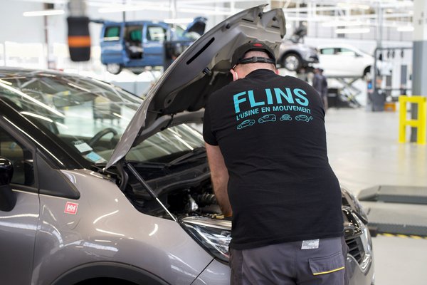 Flins tevékenysége tavaly bővült használt autók felújításával, amire 170 embert foglalkoztató, 110 000 négyzetméteren elterülő üzemet hoztak létre. A használt autókat 200 kilométeres körzetből, elsősorban márkakereskedőktől szállítják ide tréleren. Ezután alapos átvizsgálás következik, ahol gyakorlatilag feltérképezik az autókat. Minden részegységet, a motort, a hajtásláncot, a futóművet, a karosszériát, a belső teret is átvizsgálják, és a legapróbb részletekig feljegyzik a teendőket.