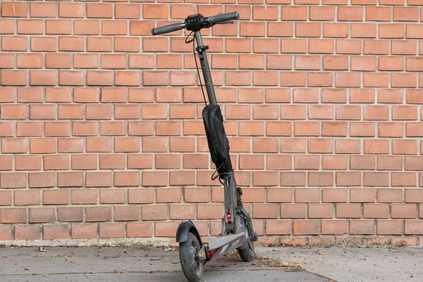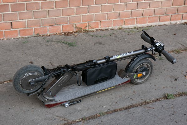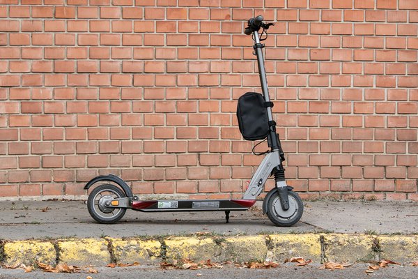 Az első kerékre ható motorfék és a hátsó kereket fékező dobfék is remekül megfogja a rollert, ettől függetlenül nem ajánlom a száguldozást. Pici és keskeny a kereke, viszonylag könnyen meg tudja vezetni egy villamossín, laza talajon meg tud akadni az eleje, ami nagyon veszélyes – hiába jó minőségű, azért elég kicsi a gép, a fizika pedig érvényes rá. Alacsony a hasmagassága is, rámpán vagy padkán simán le tud érni az alja, és ha ilyenkor megszorul, abból szintén nagy esés lehet.