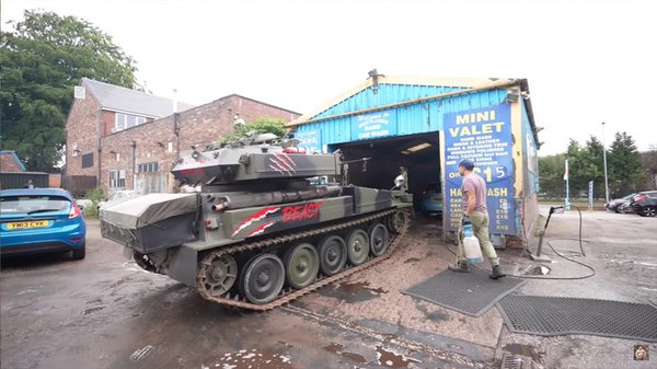 Az Egyesült Királyságban hírből se ismerik az NKH-t, tankkal is mászkálhat az ember, ha akar... tankolni. Le is mosathatja, ha talál akkora beállót, ahova befér egy 4,8 méter hosszú, 2,2 méter széles és 2,1 méter magas CVR(T) - ami ugyan szakszerűen fogalmazva lánctalpas harci jármű, de a közembernek tényleg csak tank.