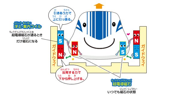 Az SCMaglev alapja a pályába épített tekercsek és a vonat elektromágnesei közti kölcsönhatás, amely egyszerre felelős a levitációért, a hosszanti, valamint az oldalirányú mozgásért. A nyolcas alakra hajtott, oldalsó pálya-tekercsekben alul-felül pozitív/negatív pólust gerjesztenek a mellette elhaladó vonat elektromágnesei, az alsó pólusok taszítják, a felsők húzzák őket, apró döccenő, hogy a gravitáció legyőzéséhez szükséges erő létrejöttéhez a vonatnak minimum 160 km/h-val kell haladnia. Eladdig kerekeken gurul a szerelvény, de a 10 centis elemelkedéssel egyidőben tisztességes repülő módjára behúzza őket és tovalebeg.