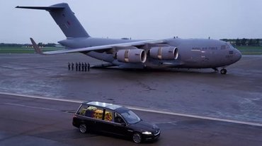 A királynő holttestét tehát a Binz elvitte Edinburgh-ba, ahonnan egy Boeing C17A Globemaster szállította Londonba. A gép és a királynő útját egyébként 4,79 millió ember követte élőben a Flightradar24-en. A Flightradar24 tájékoztatása alapján ez volt minden idők legnagyobb nézőszáma (a második helyen Nancy Pelosi tajvani útja szerepel összesen 2,2 milliós megtekintéssel), és emellett legalább félmillió ember a YouTube-on kísérte figyelemmel a Globemastert, én pedig azt vártam, hogy mikor bukkan fel a pompakocsi, és vajon mi lesz az. Nem a Defender állt a reptéren, őszintén megmondva, én nem is számítottam rá, hanem egy Jaguar XJ alapokra épült pompakocsi, temetkezési vállalkozós matrica nélkül, a királynő egyedi orrdíszével, igen, ez végre Erzsébet királynő igazi pompakocsija, 2022. szeptember 13-tól az új State Hearse, ami a Land Rover-rajongó Fülöp herceg vagy Diana autójához hasonlóan nem véletlen választás.