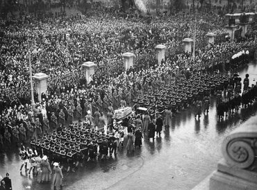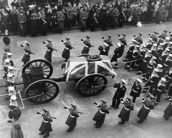 II. Erzsébetre visszatérve, szállítóeszközként nemcsak autók vesznek részt a több mint egyhetes, minden mozzanatában percre pontosan megtervezett eseménysorozaton, hanem egy 121 éves tradíciót követve egy ágyútalp, vagyis a Royal Gun Carriage is, amelyen haditengerészek közreműködésével a Westminster apátságban megtartásra kerülő állami temetésre szállítják majd a koporsót. Ez a hagyomány 1901-ben, Viktória királynő temetésén kezdődött, amikor a tervek szerint a speciális ravatallal ellátott, de eredetileg a Royal Gun Factory által katonai célokra épített 3 tonnás ágyútalpat a rajta elhelyezett koporsóval lovak húzták volna a végső ceremóniára, azonban a temetés egy különösen hideg februári napra esett, a lovak pedig bepánikoltak, elkezdtek hátrálni, és félő volt, hogy leborul a koporsó az ágyútalpról. A nagy ijedelem közepén egy tengerésztiszt odalépett az új királyhoz, VII. Eduárdhoz és azt tanácsolta neki, hogy a lovak helyett tengerészek húzzák az ágyútalpat. Villámgyorsan odarendeltek annyi haditengerészeti tisztet, amennyit csak tudtak, kötelet kötöttek az ágyútalphoz és 98 tengerésztiszt vezette, húzta Viktória királynőt az utolsó útján. Kilenc évvel később a tengerészek közreműködésével, de lovak nélkül VII. Eduárd temetésén megismételték a ceremóniát és ezzel megteremtették a tradíciót.