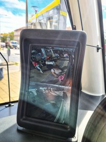 Ami érdekes, hogy minden szerelvény összeköttetésben van a BKK Futár szoftverével, gyakorlatilag valós időben ugyanaz a program fut végig a műszerfalon, amit az utas lát az applikációban. Amennyiben késik a kiírt menetidőhöz képest, azt kék számokkal jelzi, ha pedig korábban indulna a megállóból, azt piros számsorral mutatja a kijelző. Erre folyamatosan figyelniük kell, bár esetenként egyszerűen fizikai képtelenség pontosan betartani azt. Ha például rengeteg az utas a megállóban az utascsere során, akkor lehet, hogy már újabb szabadjelzést kell várni, amit a maximum 50 km/órás megengedett (szoftveresen 60 km/órára lekorlátozott a végsebesség) sebességgel nem lehet behozni. Ha torlódás van csúcsidőben a vonalon, szintén előfordulhat ilyen helyzet.