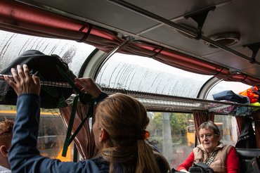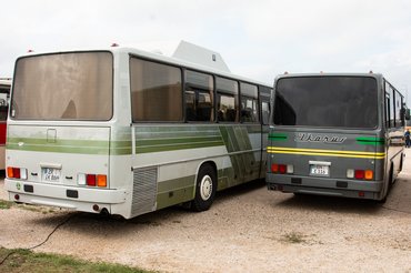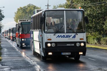 Ikarus-találkozóra illik stílusosan érkezni, és erre a Volánbusz dedikált nosztalgiaflottája kiváló alternatíva. Az aktív 55-ösökből és 66-osokból, tehát a Farosokból válogatott csapatból nekünk a Vértes Volán 1970-ben gyártott piros 55-öse jutott, amit 1996-ban Németországból mentettek haza. A hathengeres Csepel motor ma is szépen viszi, az ülései pedig otthonra is kellenének, annyira kényelmesek.