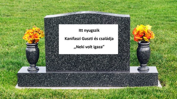 Báááámmmmm, már telibe is verték egymást, a szembejövő autóját maga alá gyűrte a kamion, NVI az árokban landolt, a kocsi kigyulladt, a felesége és az egyik gyermeke halott, de NEKI VAN IGAZA!