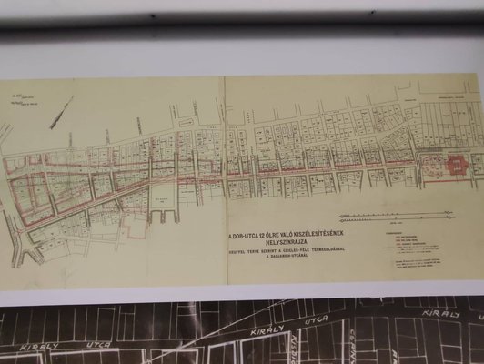 Részletesen bemutatja például a mai Deák térre tervezett új Városházától induló, és a Nagykörúton át a Városligetig érő széles sugárút tervét, ami az 1900-as évek elején merült fel először. Később leporolták a koncepciót, és a harmincas évek elején a sugárút elejének tervezték meg a Madách-teret a jelenleg is ismert árkádokkal, ez el is készült. Ugyanehhez a koncepcióhoz szabva szándékoztak kiszélesíteni a Dob utcát, néhány ház ehhez igazodva is épült a környező utcákban, még az 1960-as években is.