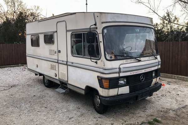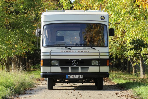 Igen, a kor személykocsijaiból ismert, jó kompromisszumot jelentő benzines erőforrást a teherkocsikba is beszerelték még akkor. Az M115-ös „Állólámpás” motorral kezdtek, ez 1982-ig volt elérhető, majd a 2,3-as benzines sort az M102-es motorkódú folytatta, ezek már tíz, illetve húsz lóerővel erősebbek voltak. E konkrét kivitele a leggyengébb, 85 lóerős, és Solex karburátor eteti – a személyautókba Stromberg 175-össel szerelték őket –, a váltója négyfokozatú. Itthon ez a Mercedes-sorozat talán esetkocsiként és rohammentőként volt a legismertebb (308, 309 és 310-es típus), érdekes, hogy fejlesztésében a Porsche is részt vállalt. Stuttgart lakóautó-gyártóknak is szállított belőle járóképes alvázként, amit aztán ők saját ízlésükre szabtak. Tették ezt annak ellenére, hogy ők is kínáltak ilyen kiviteleket, ez a Westfaliánál épített James Cook sorozat, amelynek példányait egy „sima” dobozos kocsiból alakították ki. A Hymer viszont szereti az extrém szélesítéseket, kijjebb tolja az irányjelzőket, megtoldja a lökhárítókat, vascsőre csavarozza a visszapillantó tükröket, saját szélvédőt épít be, gyakran fenn hagyja a csillagot is a hűtőrácson, amivel végképp elbizonytalanítja az érdeklődőt, mivel „mit is látok” kérdést ébreszt benne.