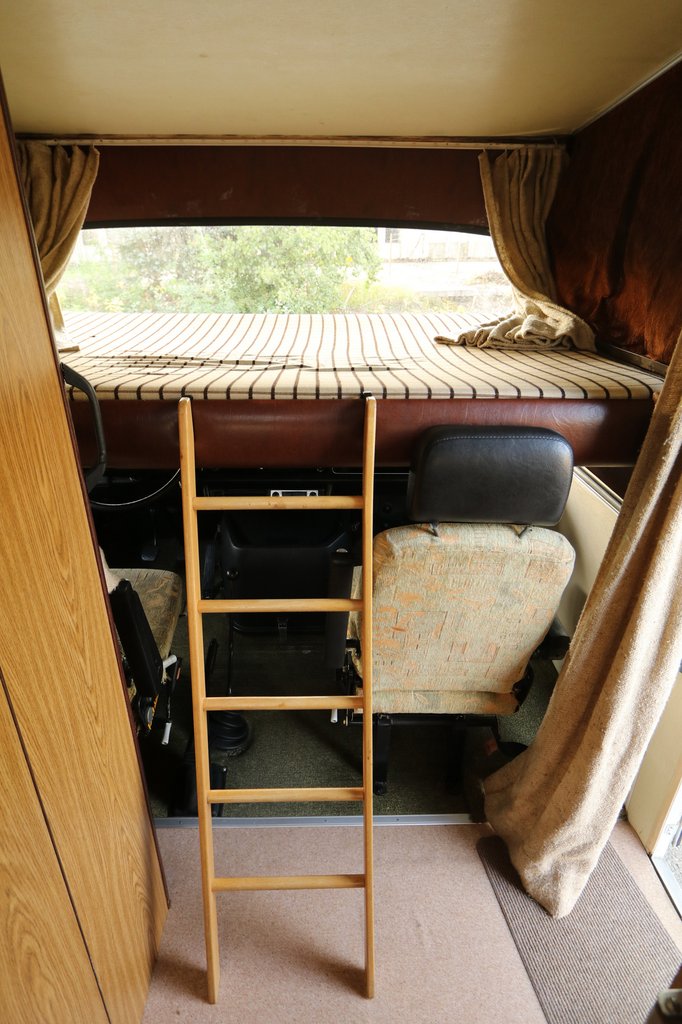 Az ülések fejterében lévő ágy lejjebb ereszthető, ekkor a magasság itt nagyságrendileg 75 centiméter. A fekhelyhez lépcsőn keresztül vezet az út. A térérzeten sokat javít, hogy a szélvédő beengedi a fényt.