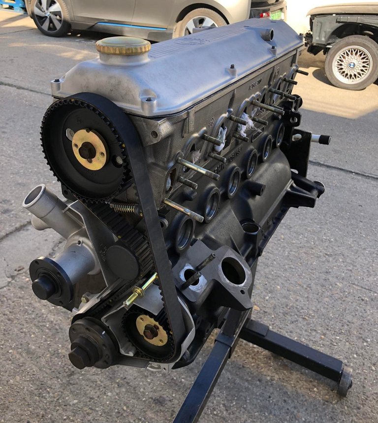 A motort is alaposan megvizsgálták. A kocsihoz készítettek egy keretet, kivették alóla a futóműveket, a motort, a váltót és a differenciálművet is. A váltóval kezdtek, abban kardánkihajtás-, nyelestengely- és rudazatszimeringet, valamint olajat kellett cserélni, mást nem, s a diffiben is csak a szimeringeket cserélték. A soros hathengeressel sem volt sok feladat, a szokásosakat cserélték benne. A fűzött blokk a hengerfejjel egyben maradt, de az összes tömítést, szimeringet és a vezérlést itt is lecserélték. Az olajteknőben volt egy vékony lerakódás, de semmi kopás nem volt mérhető, se a himbákon, se a vezérműtengelyen, minden rendben volt, nem fogyaszt olajat a motor. „Az M20-as motorok egyébként nagyon strapabíróak, 50-60 ezer kilométerenként ajánlott vezérműszíjat cserélni benne, s nyilván kenőanyagot 8-10 ezer kilométerenként. De szerencsére a BMW-nek is van Classic részlege, ahol fontos a hagyományőrzés, így szinte minden alkatrész elérhető a típushoz – mondja Roland. Persze az árak erősen változóak. A vízhűtő is új például ebben a kocsiban. Ha gyárit rendel az ember, az olyan kétszázezer forintba kerül. Viszont a gyári beszállító is árul vízhűtőt – feleannyiért. Mi ezt rendeltük meg, érdekes, hogy a BMW embléma ki van belőle köszörülve, nem adhatják el azzal...”