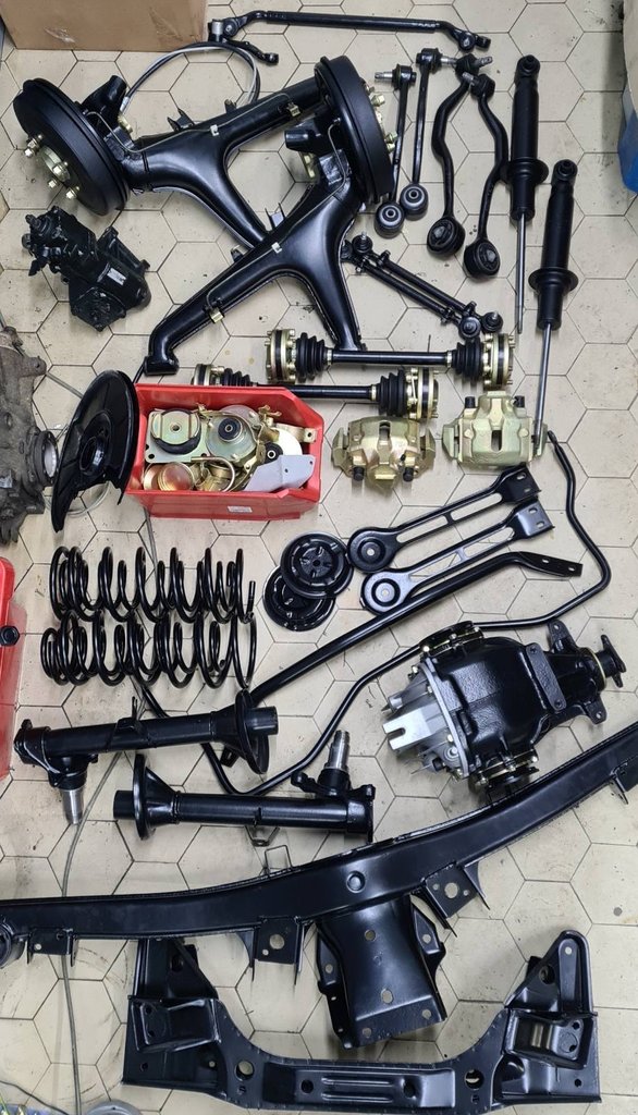A futómű már több feladatot adott. Szerencsére nem nyúltak hozzá korábban, nem ültették le, nem tuningolták. Minden elemét darabokra szedték, megtisztították, felületkezelték, majd galvanizáltak, horganyozták vagy fényezték, amit az összeszerelés követett.