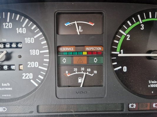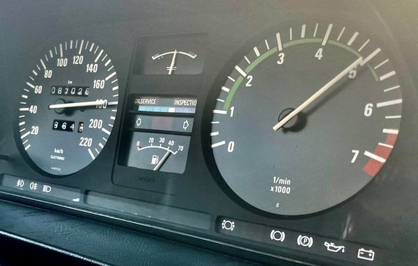 A kormány 385 milliméter átmérőjű, a legnagyobb, s kicsit magasan is áll. Állíthatatlan. Fél tuninggal ért fel annak idején a kisebb, a háromküllős. „Kint voltunk nemrég vele Mannheimben, a veteránbörzén. Minden kilométerét imádtam, 100-140 km/h-s sebesség között haladtunk hárman ülve a kocsiban, 8 l/100 km körül fogyasztott, amin nagyon meg voltunk mi is lepődve – meséli Roland. Kint 150-200 eladó autó volt, főleg német modellek és Mercedesek, BMW-k alig, 8-10 darab csupán.