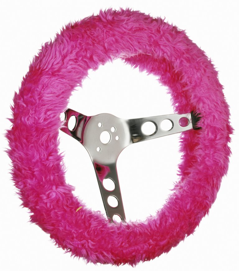 Rózsaszín, plüss, strasszköves kormányvédő, kulcstartó