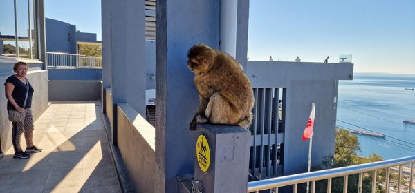 A hegy. Európa egyetlen helye, ahol szabadon élő majmokkal találkozhatsz. Makákók alkotják ezt a nagyszámú közösséget, előszeretettel ugrálnak a turisták hátára, turkálnak a hátizsákban, és szemérmetlenül lopnak is belőle. Semmit ne hagyj szabadon, ha jót akarsz! Napszemüveg, baseballsapka, kendő, bármit lenyúlnak. Etetni tilos őket, a bírság mintegy másfél millió forintnak megfelelő gibraltári font. A lányom nagyon megéhezett, ezért útközben - egy biztonságosnak tűnő, majommentes szakaszon - elkezdett enni egy almát, két harapás után azonban rástartolt egy jól megtermett példány. Szerintem a legnagyobb volt mind közül. Hősiesen eléugrottam, és az almát magasra tartva, hangosan kiabálva, hevesen gesztikulálva próbáltam elijeszteni a támadót. Aki csalódottságában a nadrágomat kezdte el lerángatni rólam. Remélem, legalább nőstény volt.