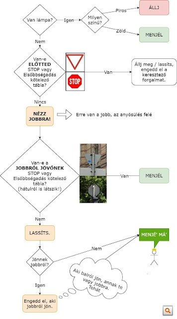 Kész, alapvetően ennyi (a kanyarodás szabályaira máskor térünk majd ki). Ezt én minden egyes kereszteződésnél elmondatom a tanítványaimmal, ameddig nem biztos a dolog.
