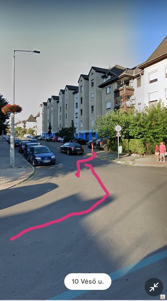 Ez egy jobbkezes kereszteződés, és van egy parkolósáv a jobb oldalon. Ha szeretnél itt balra fordulni, akkor örömmel veszi a balról érkező illető, ha a jobbkezesség ellenére elengeded, mert ha szó nélkül élsz a neked járó jogokkal, és befordulsz balra, akkor nem fogtok elférni egymástól, és jön a macera, mindenkinek csak nehezebb lesz, hiába volt jogod.