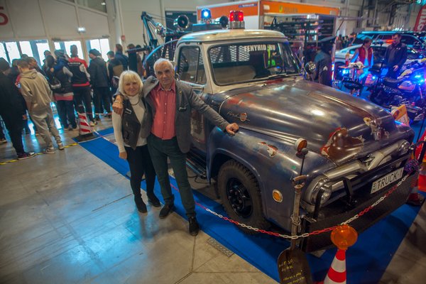 És így vagyunk az autóinak történetével is: Gyuri az 1960-as években egy Komár mopeddel indult el a lejtőn, javította, cserélgette a motorokat egyre nagyobbra és nagyobbra, majd egy gyűrűért és egy óráért megvette élete első autóját, egy Opel Olympiát. Jó üzleti érzékének hála Gyuri az 1970-es évek végén már egy Honda 800 sportkupéval hasított a budapesti utcákon. Aztán megcsípte egy bogár és sorra jöttek – a főleg akkoriban – nem mindennapi amerikai autók, egy 1972-es Ford Camper, 1986-os Ford F350-ből épített pickup, 1959-es Cadillac Coupe deVille, Airsteram, Winnebago, bigfoot, rendőr lowrider Chevrolet Caprice és folytathatnám hosszan a sort. Aztán maradt egy, a végleges Truck-1, ami nem más, mint egy 1955-ös F350 emelve szállító vontató, vagyis a mi Matukánk. Gyuri egyik nagy vízen túlra szakadt barátja Gyuri kérésére hosszú évekig keresett valami matukaszerű gépet, majd kalandos körülmények között Utah-ban végül sikerült megszereznie ezt a bizonyos autót. Matuka nem V8-as, sorhat mozgatja egy négysebességes manuális váltóval, szerkezetileg teljesen rendbe lett hozva, az a patina pedig, ami a használat, majd a közel tizenöt éves állás alatt került rá, tudatosan maradt rajta, ugyanúgy egy beszélő tárgy, mint Truck gyűjteményének legapróbb darabja. És ami teljessé teszi a képet, az egy vagány nő, Gyuri oldalán, Marika, a felesége, aki hosszú évtizedek óta a társa jóban, rosszban, és bár az autók, tárgyak jöttek-mentek, ők ketten maradnak a tökéletes páros.