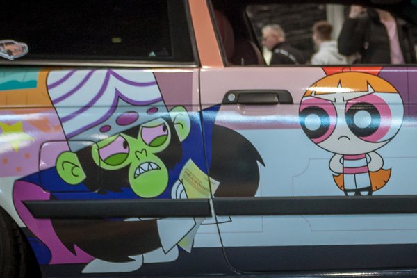 Lépjünk tovább a nem hivatalos tuningra, ami az AMTS egyik legnagyobb vonzereje volt számomra, előszeretettel lapozgattam ugyanis a megboldogult Tuning&Stereo magazint, össznépi találkozókon pedig mindig valahogyan a nagy zene és a rikító színű autók között kötök ki. Amit ilyenkor az autókon keresni szoktam, az a sok apró gag, poén, fricska. Rengeteg építési stílus, legyen az hot rod vagy ültetett Jetta, de akár egy összkerekes izlandi pompakocsi is megengedi a tulajdonosnak, hogy beszólogasson, akár másokból, akár magából viccet csináljon, harsány legyen, formabontó vagy elgondolkodtató. Szerettem volna tehát megnézni a tuningrészleget, azt viszont nem gondoltam volna, hogy egy BMW-t fogok órákon át keresni, márpedig ez történt. Reggel átverekedtük magunkat a tömegen, és a "D" pavilon felé vettük az irányt, hogy lepakoljuk a túlélőcsomagunkat. Büszkén mutogattam Briginek a nemrég beszerzett pindúr pandúros cipőmet (rajongó vagyok, ezért is kapta az egyik autóm a Szipi, vagyis Sziporka nevet a legokosabb, legszebb Pindúr Pandúr után), ő pedig azonnal mondta, hogy valahol a "B" pavilonban van egy BMW, amin pindúr pandúros fólia van. Félnapnyi kitérő után meg is találtuk, és még akár az is megeshet, hogy egy halk kis sikkantás és Mickey egér-hangú „Ottvanszipiiiiii” is elhagyta a számat, amikor megláttam Regina autóját. Ez az E36 sokkal extrább volt, mint amire számítottam.