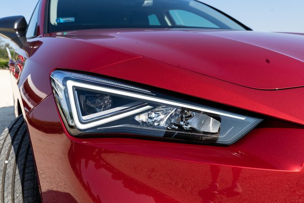 A geometrikus, három jól elkülöníthető, különböző hosszúságú egyenesből álló menetfény és a lámpatestek belülről kifelé, felfelé ívelő vonala adnak egy igazán pimasz karaktert az autónak. Amúgy sem rossz formájú és arányú típus a Leon, de kétségtelen, hogy a fényszórók nagyon sokat lendítenek a kiállásán.