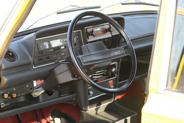 Már műanyag a műszerfala, FSO felirat látható a kormányán, már fekete a homlokfala, már nem négy függőleges hátsólámpája, hanem nagy téglalap alakú lámpái vannak. Ezek egyébként POLMOT gyártmányok.
