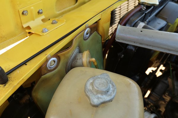A géptérben van még egyéb érdekesség is. A kor kocsijai „zacskóban” hordták az ablakmosó folyadékot, megmosolyogtató a megoldás.