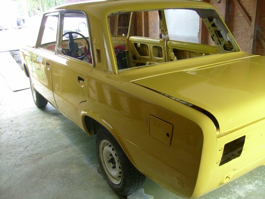 Elsőre nem sikerült a megfelelő színt eltalálni, s nem voltam megelégedve a minőséggel sem. Olyan fényezést szerettem volna, ahol a lemezek közé is befújják a festéket – ez az élfestés. Összevesztem velük, másodszorra egy fiatal, frissen „szabadult” autófényező srác vállalta ezzel az előzménnyel a feladatot. Ő alaposan szétszedte, csiszolta, felületkezelte, alapozta, s a végén acryl festékkel festette le. Nála a karosszéria elemenként lett le festve.