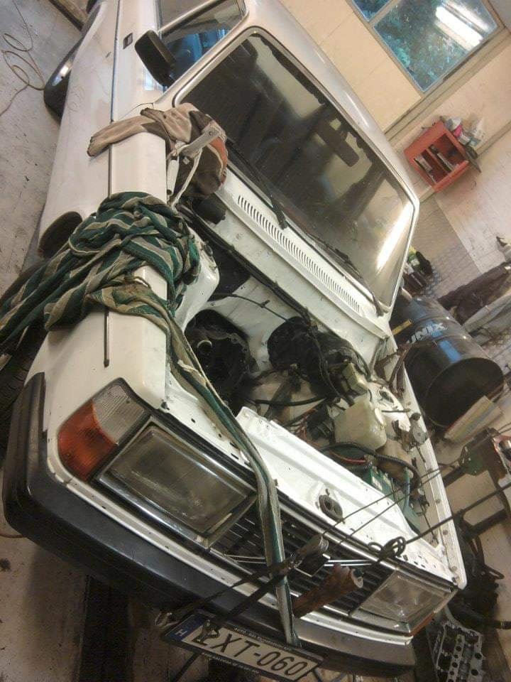 A történet 2009-ben folytatódik, egészen pontosan a szekszárdi fémhulladék telepen. A fehér kocka egyik előző gazdája itt látta meg ugyanis az autót, miközben dolgos fémgyűjtögető úriemberek éppen próbálták leadni, hogy majdan kutyakonzerv vagy májkrémes doboz készüljön a lecsupaszított, szétbontott, üzemképtelen autóból. Az illető látott benne fantáziát, és megmentette a bedarálás elől, azonban szerintem még ő sem tudta, hogy mibe vágta a fejszéjét. Az autó elég siralmas képet mutatott: volt maga a kocsiszekrény, az ajtók, a csomagtérfedél, a motorháztető, egy darab ülés, a kormánykerék, a pedálsor, egy kibelezett motor és egy üzemképtelen váltó. A sor itt véget is ér. Ennyi maradt belőle. De sztori itt még nem ér véget!