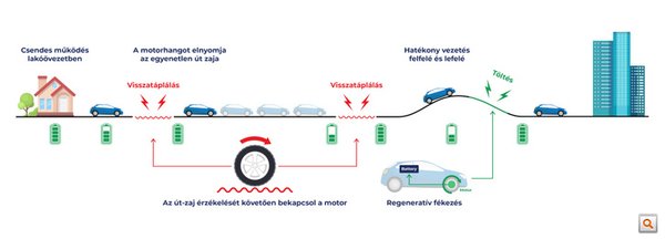 Ez a töltöttség hasznos, amennyiben még emelkedővel vagy más terepviszonyokkal kell megküzdeni, viszont a regeneratív fékezésnek köszönhetően ismét feltölti magát - innentől pedig ismét rendkívül zölden tud üzemelni. Ha végiggondoljuk, ez a klasszikus agglomerációból bejáró közlekedés, melyre rengeteg ember keres megfelelő közlekedési eszközt - erre ad választ a Nissan új hajtáslánca is.