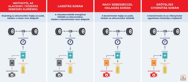 Városi használatban és kisebb gyorsításoknál élvezhetjük a csendet, mintha egy elektromos autóban ülnénk, ha pedig lepadlózzuk az autót, felpörög a benzinmotor és elkezdi tölteni az akkumulátort. Érdekesség, hogy az autó érzékeli azt is, hogy milyen útfelületen haladunk; ha rázósabb, rosszabb úton közlekedünk, akkor beindítja a belsőégésű motort és töltésbe kezd, hiszen az út frekvenciája miatt kevésbé érezzük a motor rezgéseit.