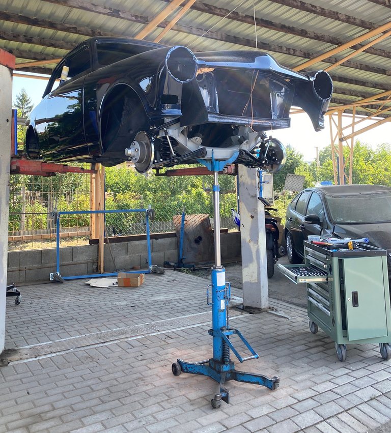 Először a motort emeltük ki a helyéről, s amíg annak felújítását elkezdtük, a karosszériamunkák is elkezdődtek.