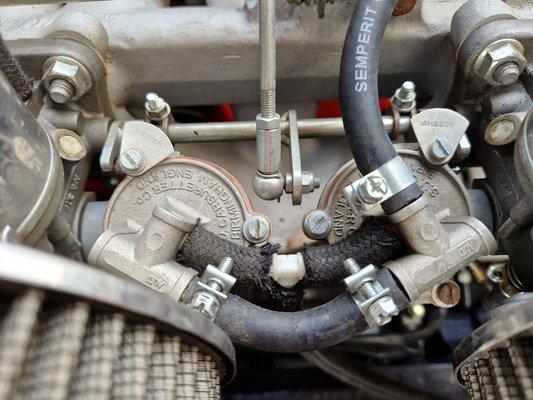 S kettő darab, új SU karburátort is kapott – ezek közel egymillió forintba kerültek. A legnehezebb feladat ezek összehangolása volt, nem árt, ha van hozzá szívónyomásmérő is, de valójában inkább a tapasztalat és a rutin számít, műszer nélkül is elvégezhető a feladat, de simán eltart 2-3 napig a finomhangolás. Szóval a karburátorok lelkét érző szakember életbevágó a feladathoz.